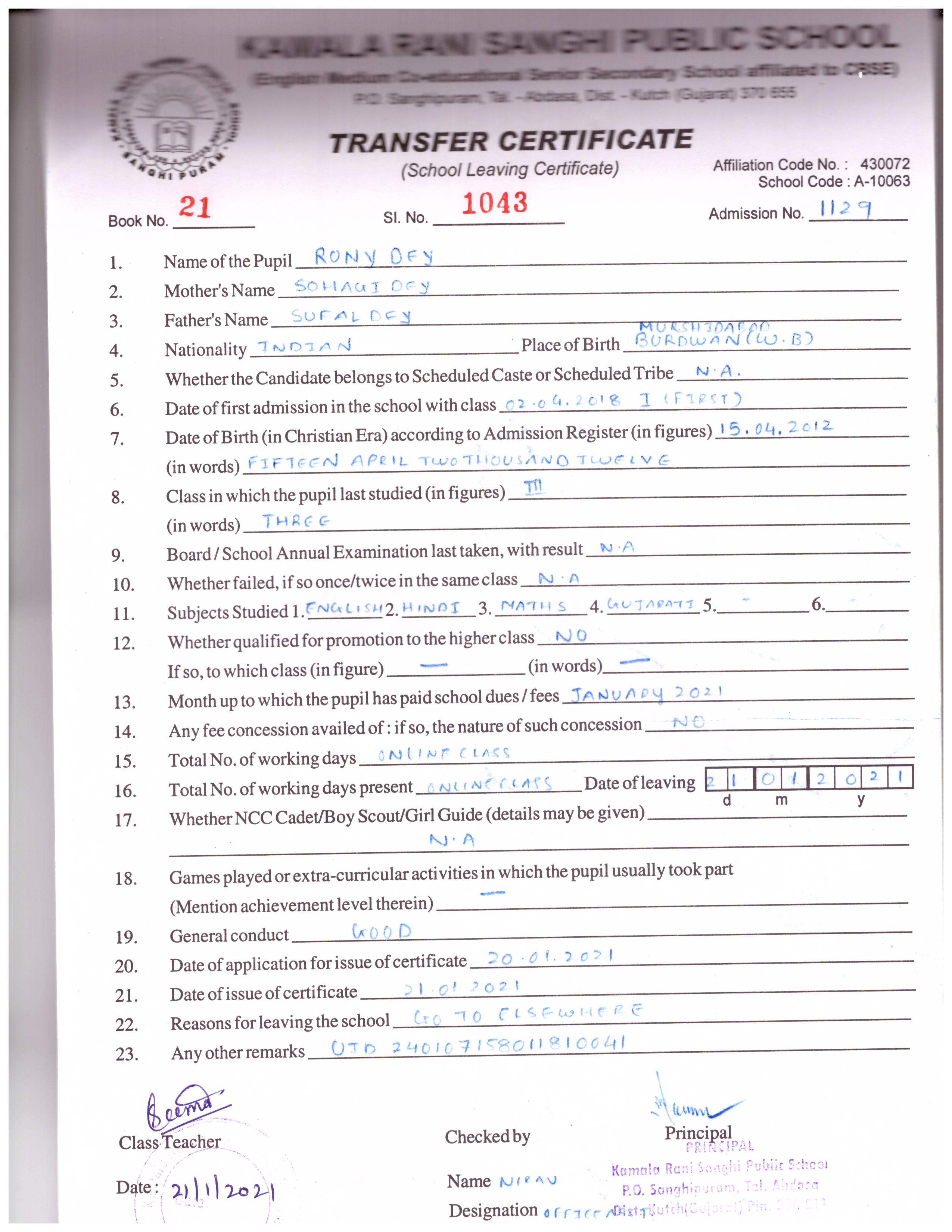 | Prabhansh Bhaumik | X | 2020-2021 |  |