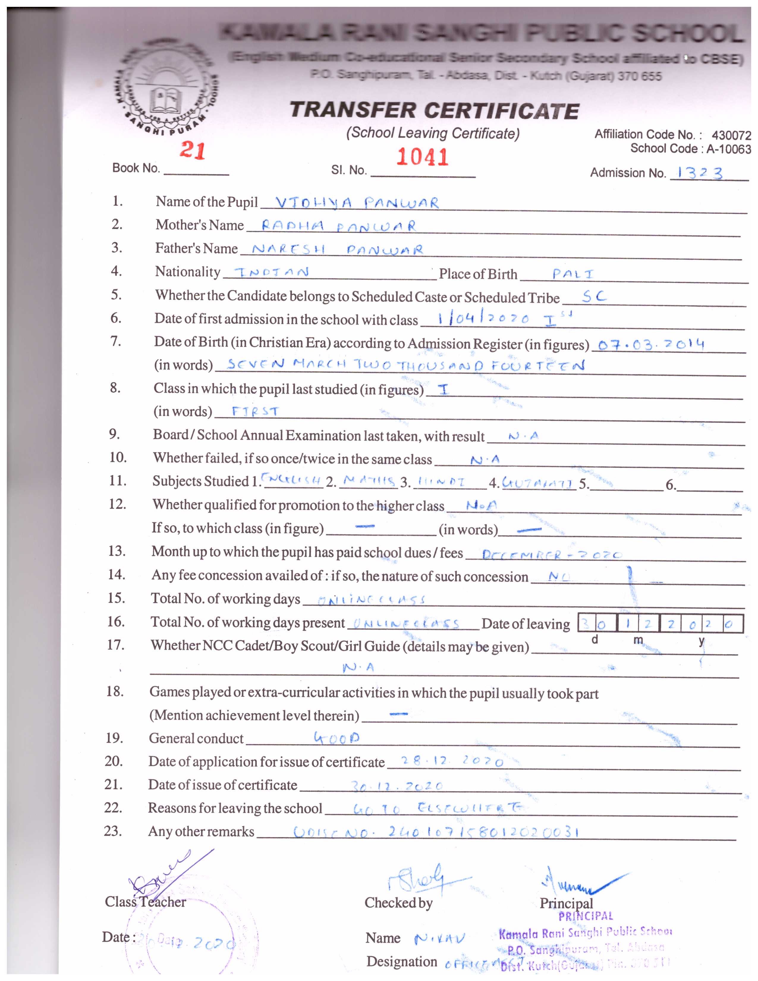| Chavda Vanshika Sunil | VI | 2020-2021 |  |